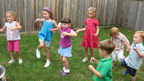 NOTE: It is necessary to put safety first in active music. Please TEACH children to run in the same direction. I do it by having them walk, then jog, then run – stopping briefly between each tempo when introducing running for the first time. In successive activities, a reminder is all that's necessary. I ask my students, "What do we have to remember when we run?" They answer, "Don't bump into our friends, and everyone goes in the same direction." With younger 1's and 2's, I demonstrate several times before expecting them to remember these guidelines.