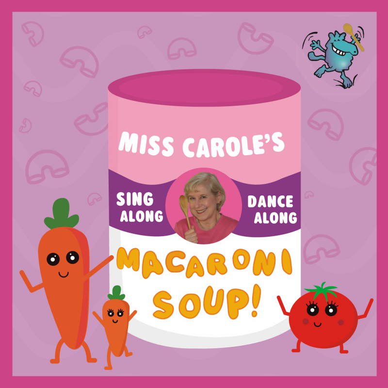 Miss Carole's recordings are now streaming on most platforms - Miss Carole's award-winning recordings can be purchased as cd's or downloads. CD's come with all the lyrics and usage instructions in the liner notes. Downloads come with a pdf of the same information. YouTube: Macaroni Soup with Miss Carole has 10 video episodes, a single and the series