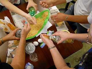 Wanna shake some more? Try shaking to "We're Going to Kentucky", the Song of the month in July '11. You'll find the directions for making bottle shakers there, too! Shaker warning: DO NOT use plastic Easter eggs taped or glued together – if they break, they produce very sharp shards which can hurt a child quickly. Old film cans, yogurt containers or bottles are MUCH safer.